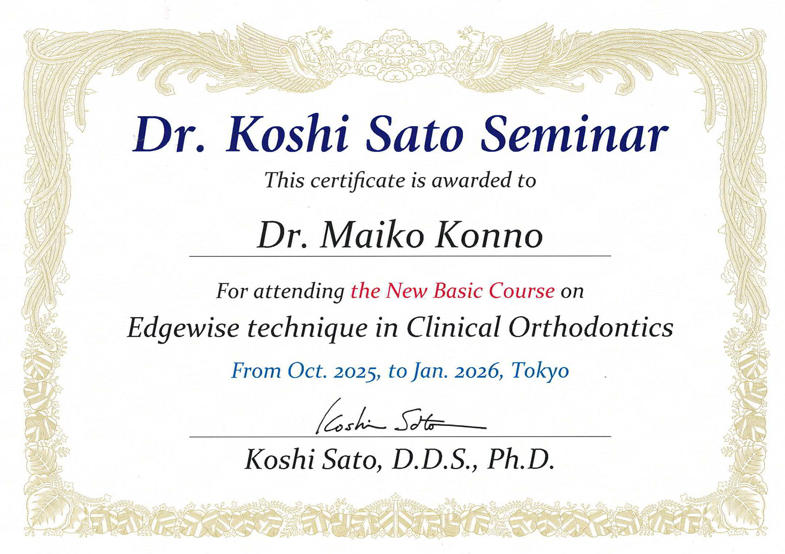 | 講習会参加履歴 | ツカモトセミナー(歯周内科・顕微鏡検査) マウスピース矯正マイスター育成研修8日コース |